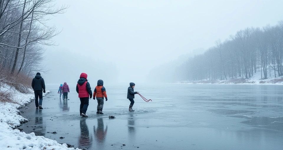 Policja apeluje o ostrożność przy zamarzniętych stawach, jeziorach i rzekach. Brak nadzoru nad dziećmi i lekkomyślność dorosłych mogą skończyć się tragedią. Sprawdź, jak bezpiecznie reagować przy załamaniu lodu.